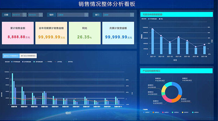 - 通過數(shù)據(jù)分析看板,可以直觀發(fā)現(xiàn)、分析、預(yù)警數(shù)據(jù)中所隱藏的問題,及時(shí)應(yīng)對(duì)業(yè)務(wù)中的風(fēng)險(xiǎn),發(fā)現(xiàn)增長點(diǎn)